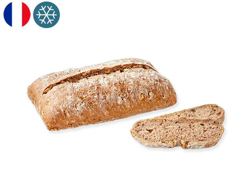 The taste of walnuts lends a gourmet, slightly sweet note to this traditionally oval loaf, which can be served sliced or toasted.