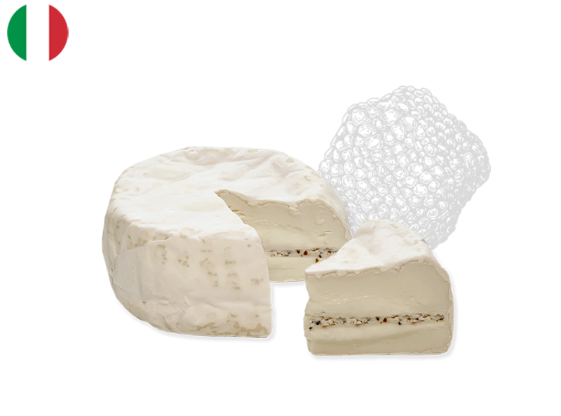 Surrounded by a smooth and flowery rind, the combination of a strong, creamy Buffalo paste and a thin, subtle layer of Italian summer truffles provides a perfect balance. It is often used as a dessert cheese or as an appetizer with bread and fruit. It pairs well with piece-bodied red wines such as Cabernet Sauvignon or Syrah.
