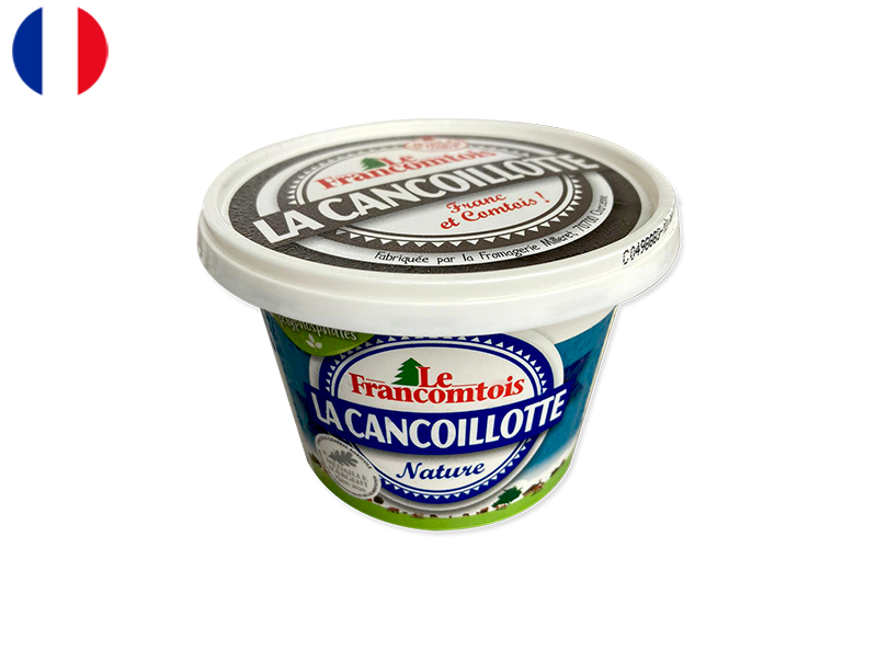 Cancoillotte is a French cheese originating from the region of Franche-Comté. It is believed that this cow’s milk cheese with a thick and creamy texture first appeared more than 2,000 years ago. Originally, the cheese was called fromage fondu (melted cheese) and fromage de femme (housewife’s cheese).