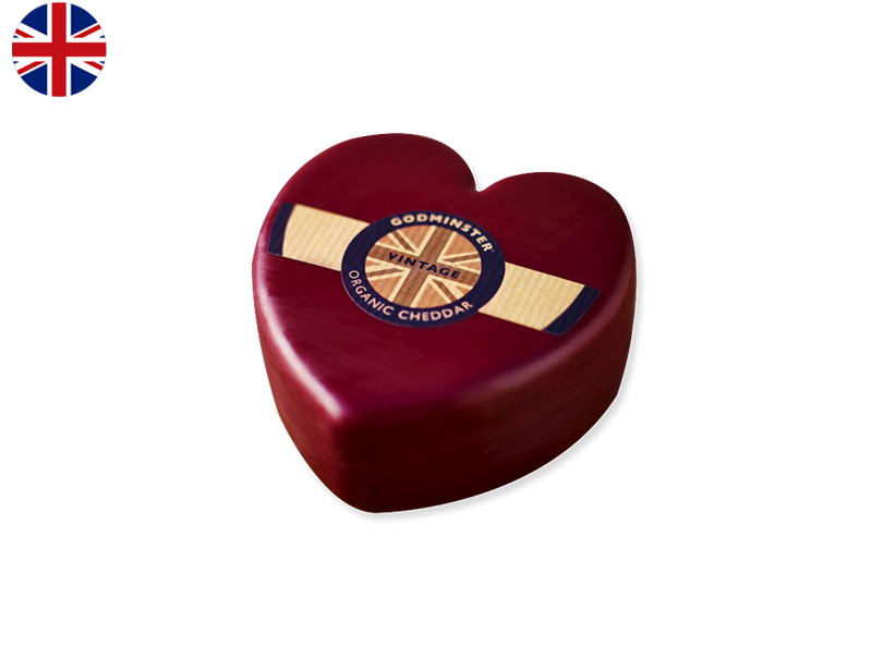 Produced by the Godminster Farm with the milk of their own herd of 320 organic dairy cows, this heart-shaped Cheddar is covered in Godminster’s distinctive burgundy wax. Matured for 12 months, it has a rich depth of aromas and a smooth texture. The perfect treat for a romantic dinner!