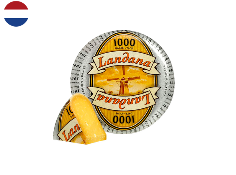 Originating in the Netherlands, Gouda was traditionally made by women. Our 1000 Day Aged Gouda has a yellow-orange paste with a firm texture. Rich in flavours, expect beautiful fruity and caramelized notes mixed with a roasted aroma. This aged cheese has crunchy crystals of amino acids in its paste that have developed during its long maturation process.