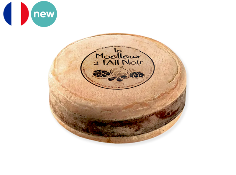 Moelleux with Black Garlic is a raw cow’s milk cheese made with black garlic. Milky, sour cream and grassy, the added black garlic gives the cheese a totally new flavour that will surprise your palate.