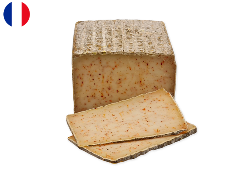 Tomme Pur Brebis with Espelette Pepper is a delightful cheese that hails from the Aveyron region of France. Crafted from pure sheep’s milk, this semi-hard cheese boasts a smooth texture and rich, nutty flavour. The addition of Espelette pepper, a prized ingredient from the Basque region, infuses the cheese with a subtle heat and a hint of fruity sweetness.