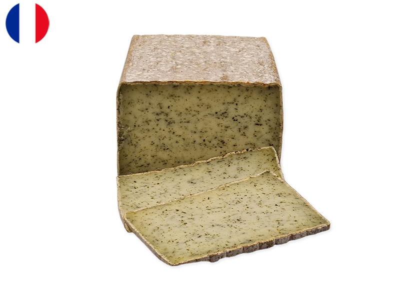 Tomme Pur Brebis with Wild Garlic is a flavourful cheese that originates from the Aveyron region of France. Crafted from pure sheep’s milk, this semi-hard cheese is renowned for its smooth texture and rich, nutty flavour. The addition of wild garlic lends a delightful twist to the cheese, infusing it with aromatic and herbal notes that complement its creamy taste perfectly.